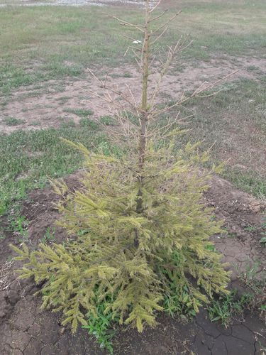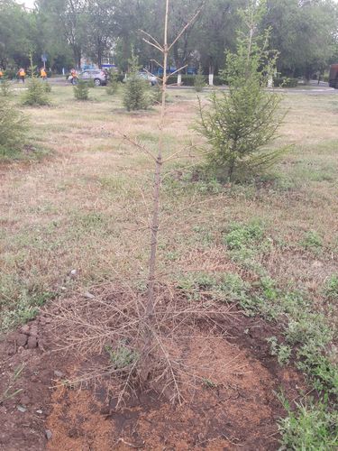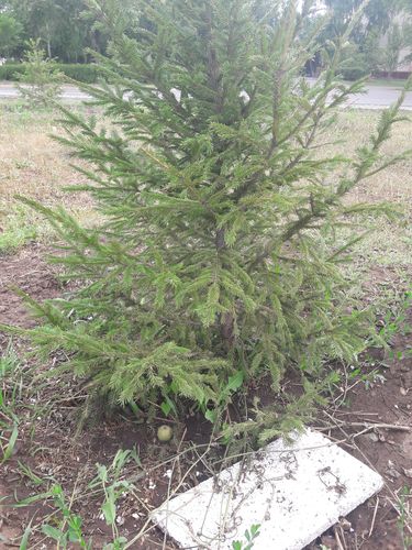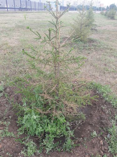 Мы наведались в сквер, ожидая увидеть, что саженцы зеленеют и прибавляют в росте. Но, к сожалению, состояние, в котором на сегодняшний день он находится, оставляет желать лучшего. Издалека деревца выглядят красиво и ухоженно, но стоит подойти ближе, как картина меняется. Здесь и мусор, и большое количество сорняков… Что же касается самих саженцев, то большинство из них принялись и выглядят бодро, но есть и те, которые зачахли. Нельзя сказать о том, что за елями здесь совсем не следят, поскольку видны следы полива, но, наверное, на этом и заканчивается весь уход за сквером. По нашим подсчетам здесь не прижилось порядка 12% деревьев.