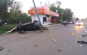 Правоохранители прокомментировали ночное ДТП на улице Театральной областного центра, когда автомобиль "Лексус" на высокой скорости сначала врезался в ларек на остановочном павильоне, а потом протаранил столб.