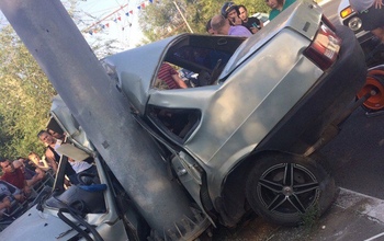 В результате ДТП машина, в которой находилась компания, врезалась в столб.