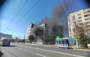 В Оренбурге спустя 9 месяцев после первого пожара вновь произошло возгорание на территории строящегося здании на улице Терешковой.