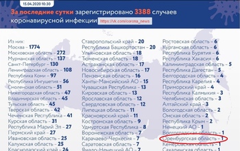 Как сегодня сообщила региональный министр здравоохранения Татьяна Савинова, на 16 апреля зарегистрировано в Оренбуржье 157 случаев коронавирусной инфекции, из которых десять так называемые клинические диагнозы - отрицательный лабораторный тест, но типичные для этого заболевания симптомы.