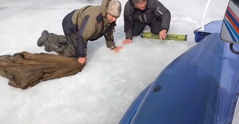 Мотособака утонула, а рыбаков спасли: на Ирклинском водохранилище под мужчинами треснул лед
