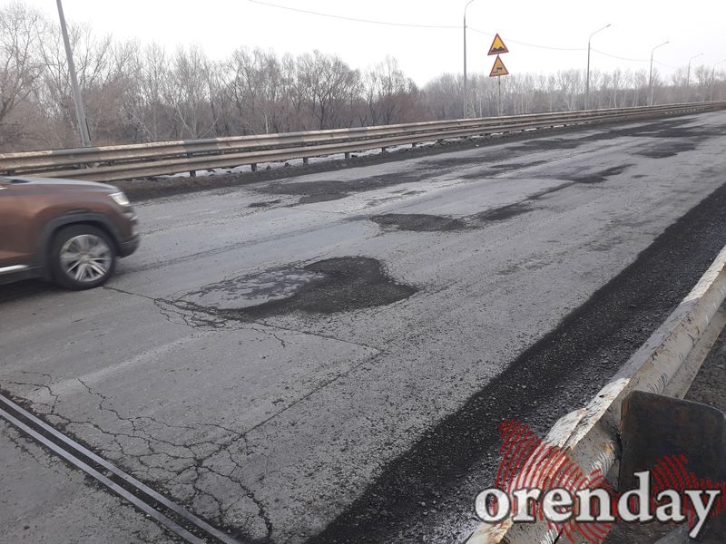 Сказать, что он находится в ужасном состоянии, значит, не сказать ничего. Дорожное покрытие разбито настолько, что «живого» места нет. Ямы и выбоины начинают попадаться буквально с самого заезда на мост со стороны Оренбурга.