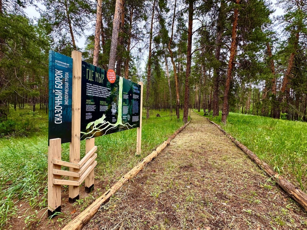 "Зеленая жемчужина" Оренбургской области готова порадовать своих гостей еще одной экотропой. Ее обозначили специальными навигационными бревнами, которые помогут не сбиться с маршрута. На пути установлены указатели. А также беседки для отдыха. Ведь длина маршрута - порядка трех километров.