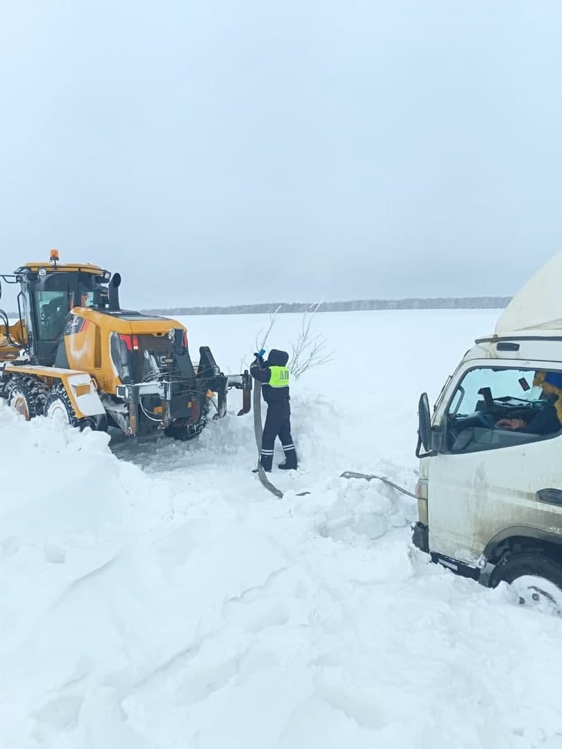 Прибывшие полицейские вызвали спецтехнику и организовали эвакуацию автомобиля на проезжую часть: грузовой фургон был спасен из снежного плена.