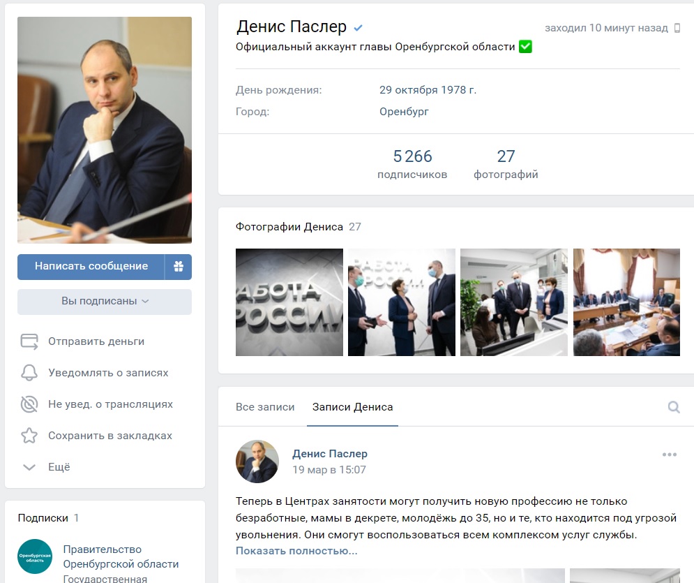 От губернатора поздравлений народы Оренбуржья пока не дождались, его официальная страница Вконтакте обновлялась в последний раз 19 марта.