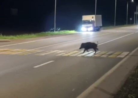 Дикая хрюша бежала по своим делам по разделительной полосе, абсолютно не мешая транспорту и не создавая опасность для участников дорожного движения. Когда кабанчик дошел до пешеходного перехода, спокойно пересек дорогу по «зебре» и целый и невредимый продолжил свой путь.