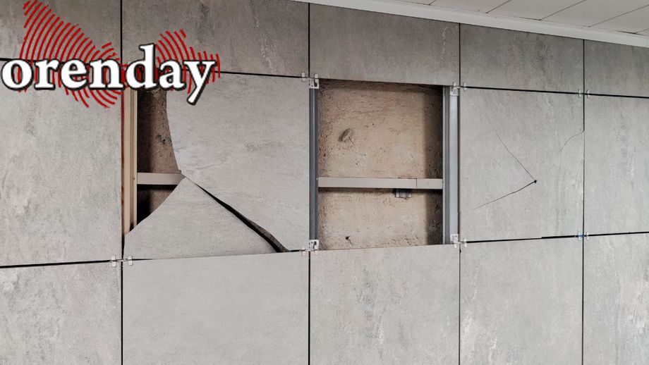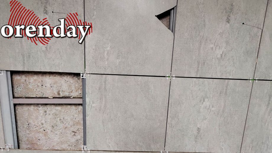 Судя по отверстиям, плитку на прочность испытывали из пневматики. Пульки оказались сильнее.