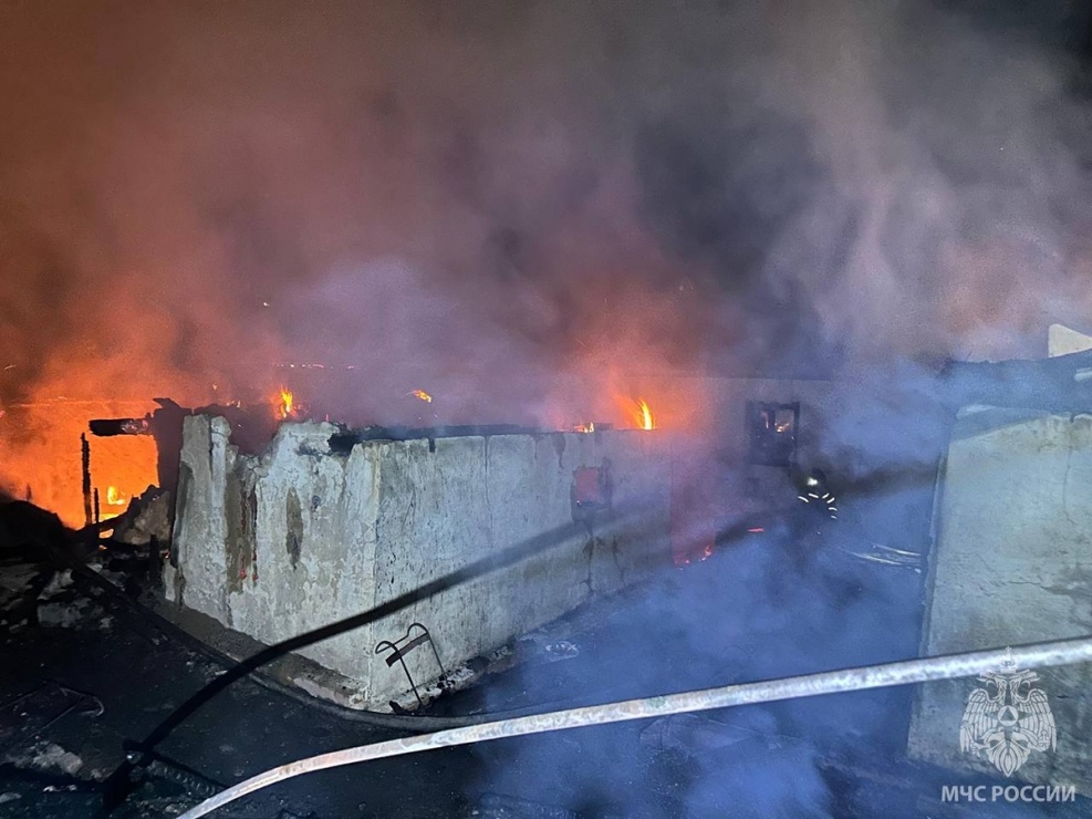 Сообщение о пожаре на пульт спасателей поступило сегодня вечером. В поселке Первомайском загорелись хозяйственные постройки. Огонь распространился на внушительной территории. В настоящее время площадь пожара составила около 400 квадратных метров. На месте ЧП работают 17 человек и 5 единиц техники МЧС России.