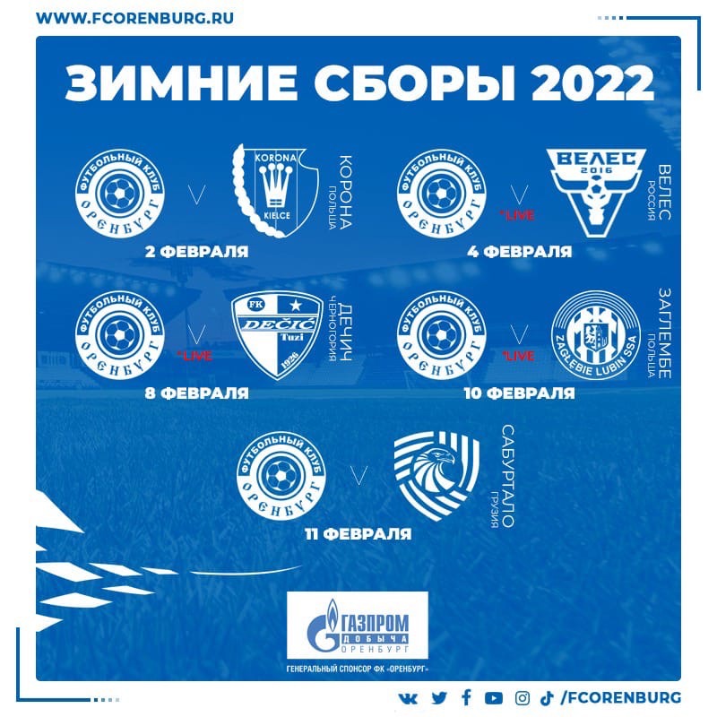 Если на первом сборе, который традиционно закладывает физическую подготовку, было сыграно только два контрольных матча (один "Оренбург" проиграл "Уфе" со счетом 1:4, второй выиграл у болгарского "Берое" 3:1), то на втором сборе запланировано пять матчей.