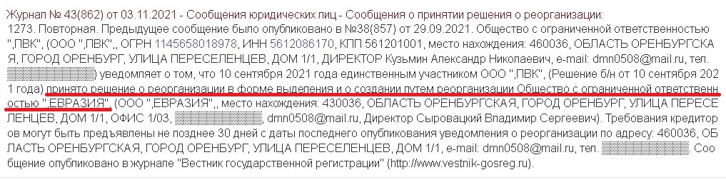 Права кредитора («Банк Оренбург») к должнику (ООО «Евразия») реализуются единым лотом в полном объеме и на тех условиях, которые будут существовать на момент перехода прав (требований). Подчеркивается, что ООО «Евразия» является действующим юридическим лицом без признаков несостоятельности (банкротства). В отношении предмета продажи отсутствуют судебные дела и исполнительное производство. Ранее ООО «Евразия» называлась ООО «ПВК», но с осени 2021 года находится в процессе реорганизации в форме выделения в эту самую «Евразию».