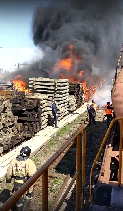 Как сообщили в ГУ МЧС России по Оренбургской области, произошло возгорание складируемых шпал на открытой площадке на территории путевой машинной станции.