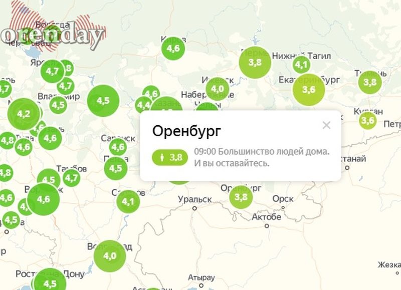 На сегодняшнее утро в Оренбурге индекс самоизоляции оценивается на 3,8 баллов, это означает, что большинство людей дома. Судя по карет, видно, что оренбуржцы с каждым днем все меньше стараются выходить на улицу. Еще вчера у нашего города на онлайн-карте был показатель 3,2 балла.